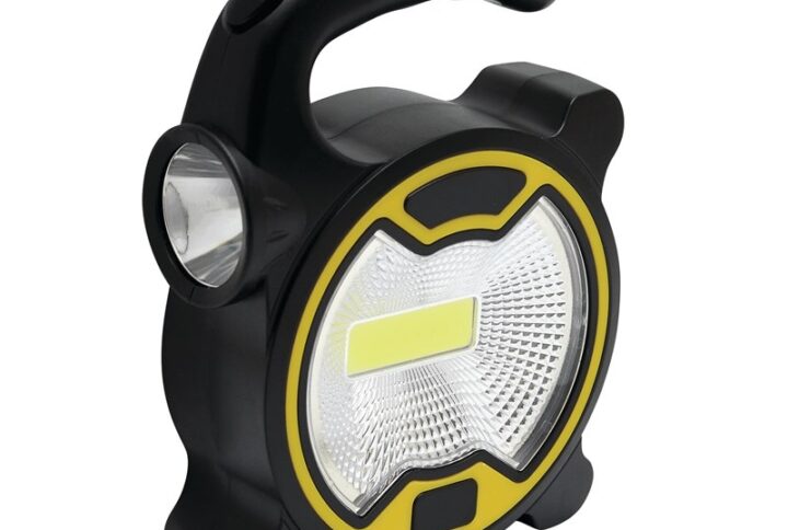 Lampe de travail DEL WORKFLOW: avec 24 DEL blanches, Bouton marche / arrêt, Plaque métal pour marquage, extérieur gomme avec aimant pour fixation et crochet pliable au dos