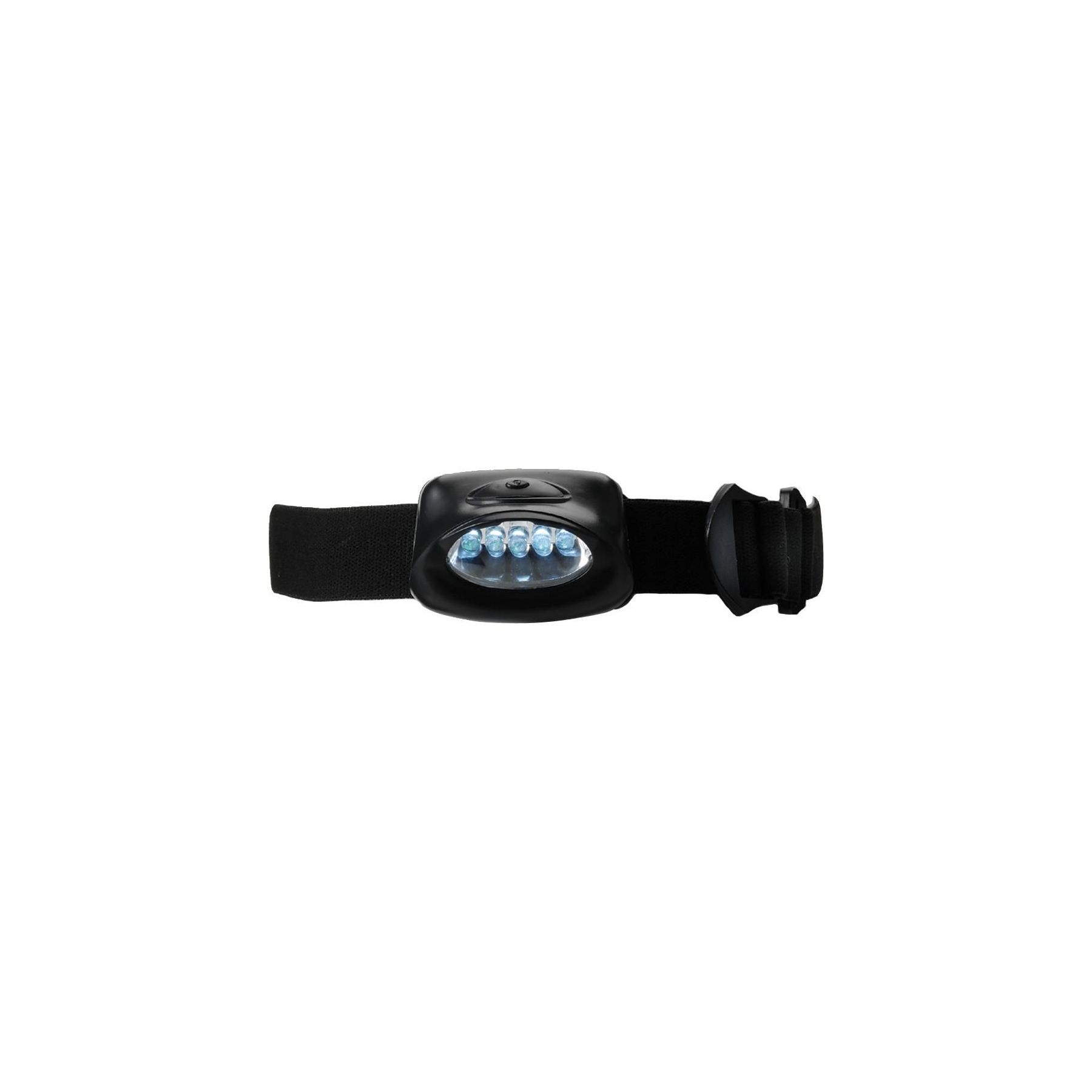 Lampe frontale en plastique avec système magnétique détachable munie de 5 LEDS avec fonctions fixe, clignotement et balayage, piles incluses.