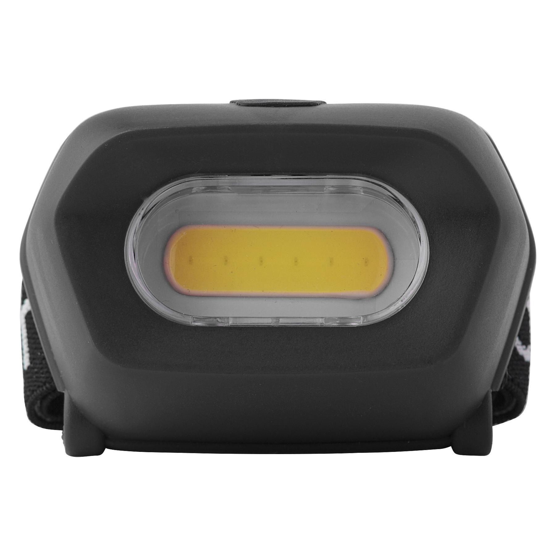 Lampe frontale en polyester avec 3 modes d”intensité lumineuse et sangle réglable, piles incluses.