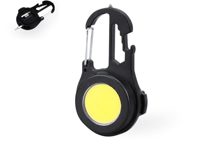 Lanterne d’ouverture puissante fabriquée en abs robuste et 30 lumières COB, avec trois positions de lumière (fixe et clignotante à deux vitesses). Comprend un mousqueton pour le transport facile, un support arrière de soutien, des ouvre-bouteilles et un aimant puissant. Rechargeable, avec batterie de 300 mAh. Câble inclus et manuel en anglais et espagnol. Présentée individuellement dans la boîte design.