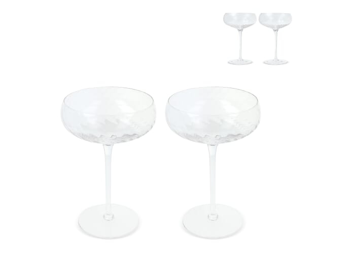 Ces luxueuses coupes à champagne Opacity sont fabriquées en verre transparent avec un magnifique motif en verre filé. Les coupes sont également parfaites pour les desserts ou les liqueurs. Un design qui reflète le contraste entre le luxe et l’originalité; Design par Studio Byon. Livrés dans un coffret cadeau.
