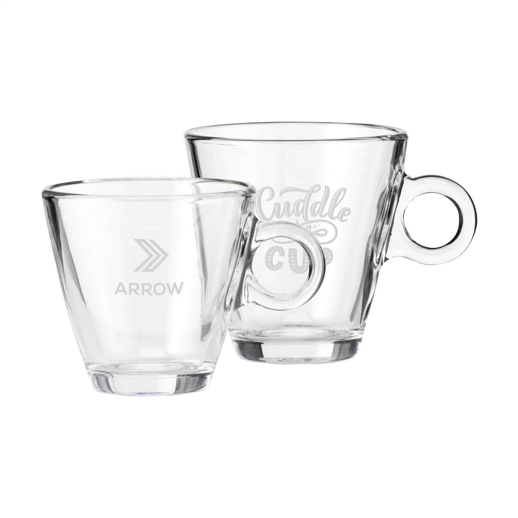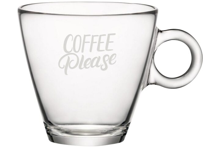 Grand tasse à thé en verre trempé de haute qualité. Modèle intemporel avec une belle anse ronde. Capacité 320 ml. Fabriqué en Italie.