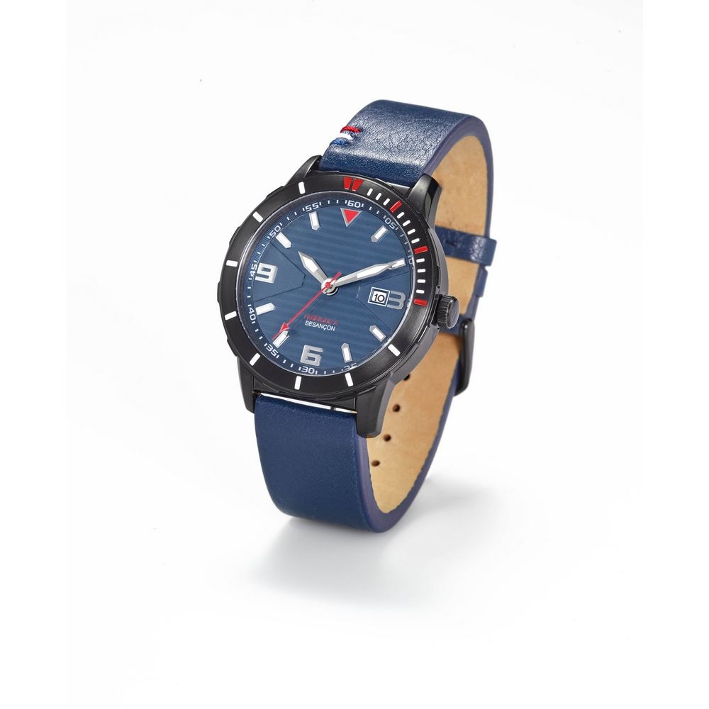 • Bracelet cuir véritable noir ou bleu avec broderie tricolore