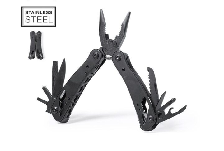 Multi-outil avec corps robuste en acier inoxydable et poignée en bambou, avec 12 fonctions. Comprend des couteaux et des couteaux suisse tournevis, fichiers ouvreurs et pinces. Avec du ruban de transport en cuir et présenté dans une boîte individuelle.