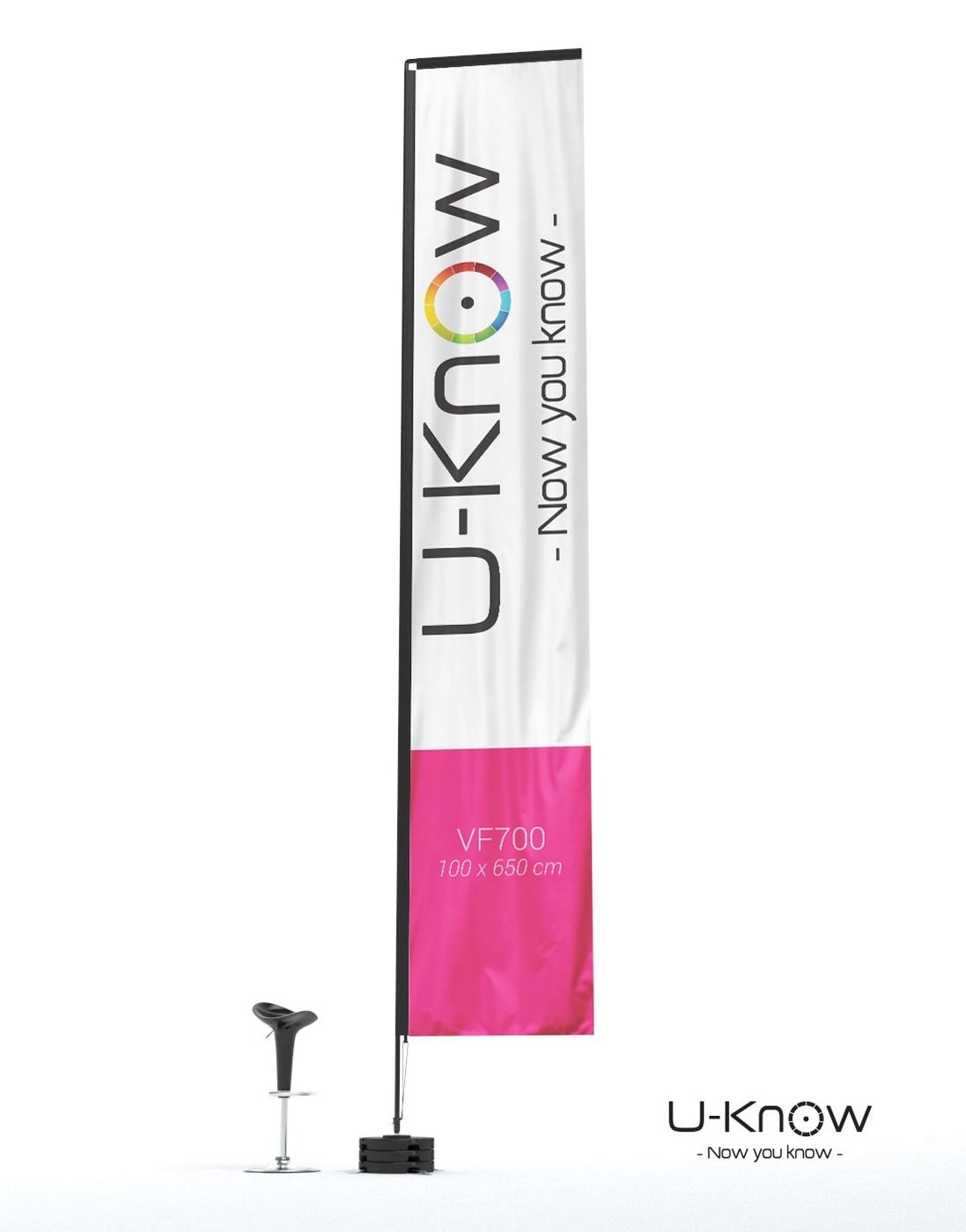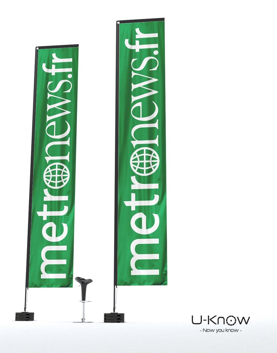 Beach flag en H ou rectangulaire de 7m de hauteur. Voile oriflamme en matière 100% polyester 115g/m². Seule une impression recto seule est possible. L’impression est réalisée en quadri numérique et visible au verso par transparence. Le fourreau noir de la voile est renforcé et fabriqué dans un polyester Oxford 300 D. Le mât est en fibre de carbone (très résistant). Le mât se fixe sur le croisillon acier monté sur un axe de rotation spécial à roulement à billes MATP90. Il convient de lester avec au moins 3 socles PVC Béton sans axe de rotation (réf:MATP31) pour obtenir une bonne résistance aux vents pour ces oriflammes géantes. Utilisation extérieure exclusivement. Garanti pour un vent inférieur à 70 km/h..Structure disponible sur stock dans notre entrepôt parisien, impression réalisée après validation de la commande