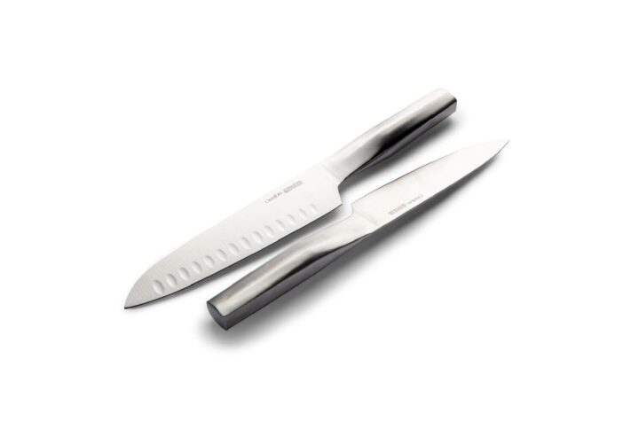Un magnifique ensemble de couteaux au design Orrefors Jernverk. Ces modèles sont indispensables dans la cuisine. Un couteau de chef (15 cm) et un couteau de chef japonais (20 cm) de la plus haute qualité. Livré dans une belle boîte cadeau. Le designer suédois Jon Eliason est responsable de ce design moderne.