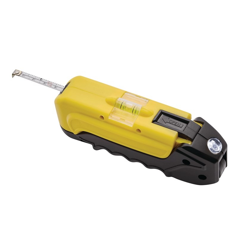 Outils multi-fonctions HINGED avec 17 possibilités d´utilisation: niveau, tournevis télescopique avec 12 embouts, marteau et lampe LED, mètre 1 m, dans une boîte cadeau