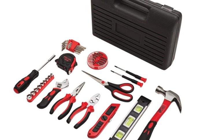 Outils multi-fonctions HINGED avec 17 possibilités d´utilisation: niveau, tournevis télescopique avec 12 embouts, marteau et lampe LED, mètre 1 m, dans une boîte cadeau