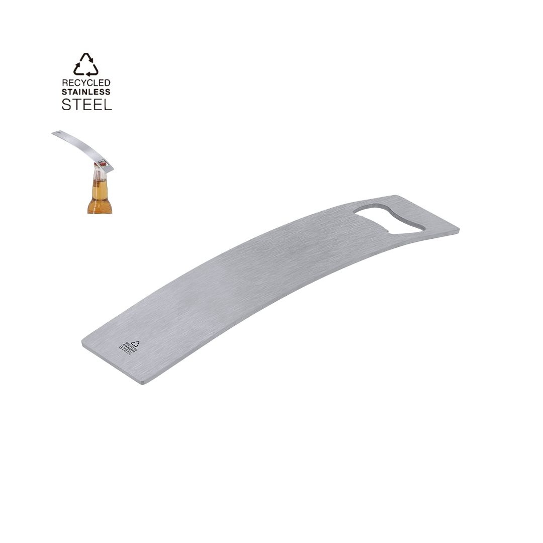 Ouvre-bouteille en acier inoxydable recyclé. Inclut un label en acier inoxydable recyclé.L’acier est l’un des matériaux les plus demandés et que l’on peut trouver presque partout, des produits d’usage quotidien aux grandes constructions. Avec d’innombrables propriétés, parmi lesquelles la durabilité et son haut degré de réutilisation, en faisant une alternative très appréciée dans les solutions de durabilité. Traitée correctement, elle permet d’obtenir de nouvelles ressources d’utilisation infinie.