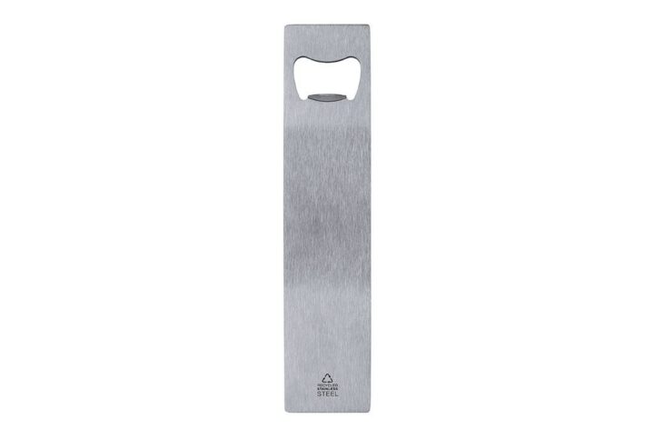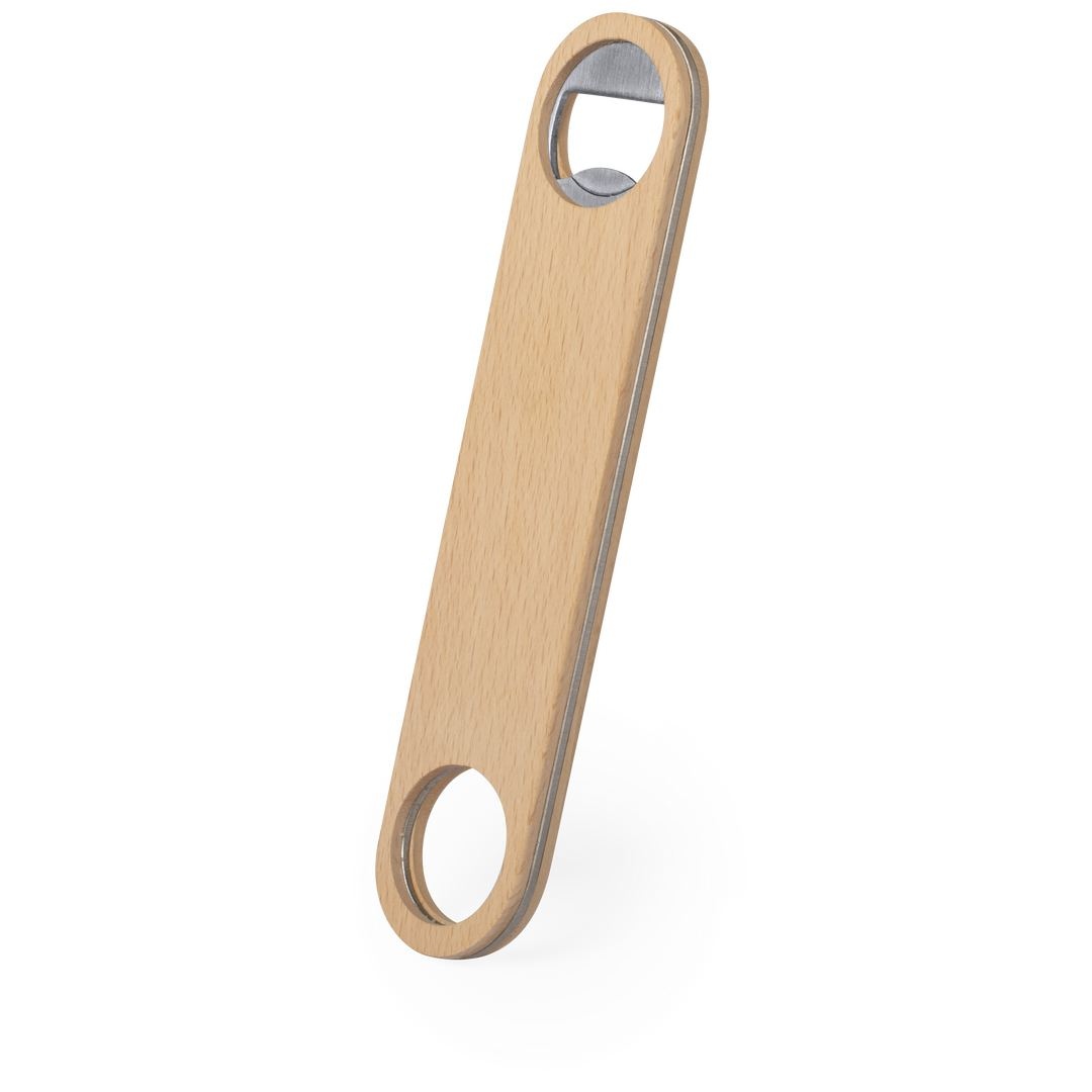 Ouvre-bouteille en bois de hêtre poli, intérieur en acier inoxydable, avec découpe pour le suspendre.