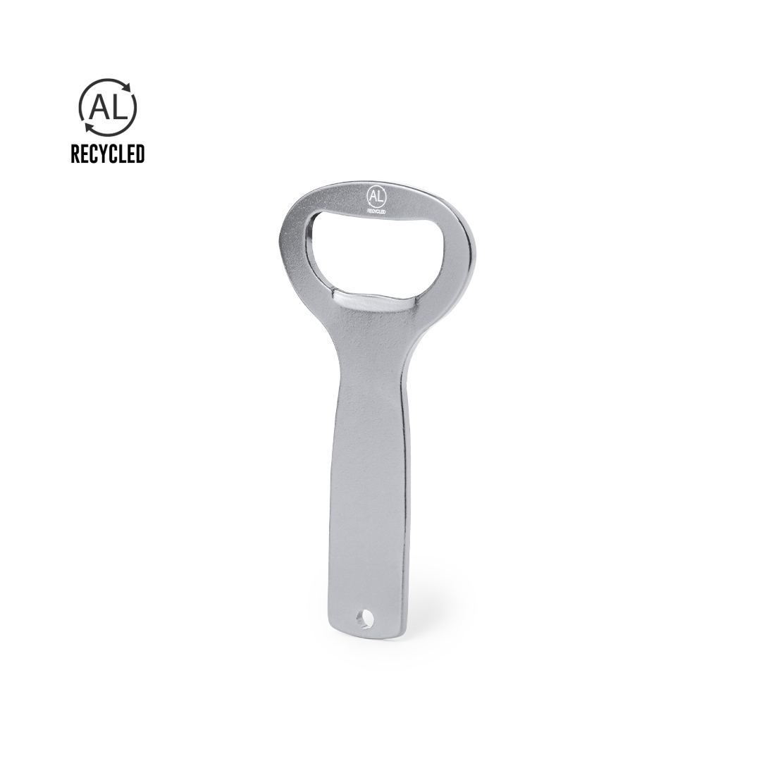Décapsuleur en aluminium recyclé dans une gamme de couleurs vives. Avec une poignée découpée pour pouvoir raccrocher. Spécialement conçu pour le marquage au laser. Il comprend un badge en aluminium recyclé au centre et est disponible dans une gamme de couleurs variée. Présenté dans un sac en papier recyclé.L’aluminium recyclé est un matériau avec des possibilités de recyclage presque infinies, sans perdre ses propriétés d’origine et consommant moins d’énergie dans ce processus.Certification GRS (Global Recycled Standard / Standard de Recyclage Global), qui garantit l’origine recyclée des matériaux utilisés pour fabriquer le produit.
