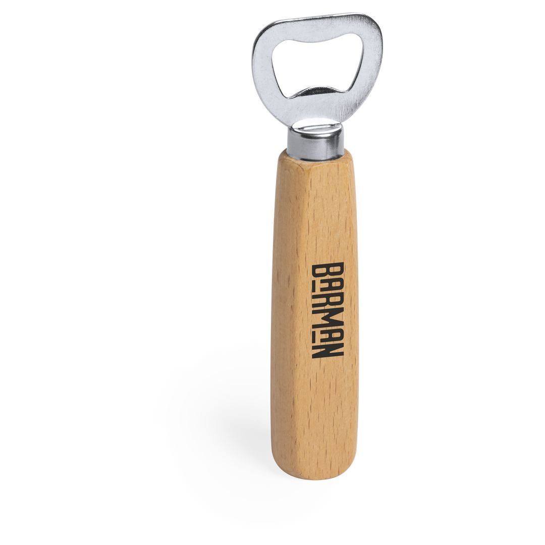 Ouvre-bouteille en hêtre poli, intérieur en acier inoxydable.