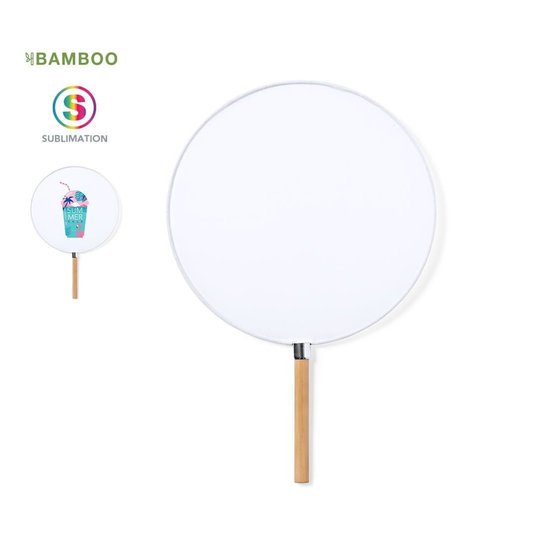 Pai Pai élégant en polyester spécial résistant pour la sublimation. Avec poignée en bambou et détail chromé.