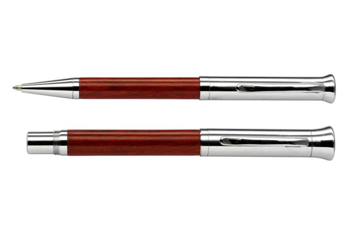 Parure de stylo bille et roller en bois de hêtre et métal dans un écrin en bois de hêtre, mines bleues. Fourni avec une encre d’origine allemande Dokumental.