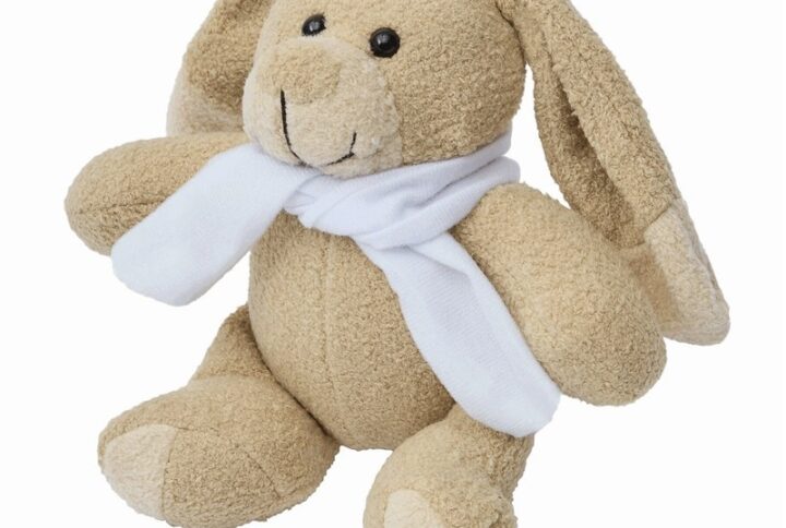 Peluche lièvre MINNA: avec pelage doux et foulard verte (emballé séparément) pour la personnalisation