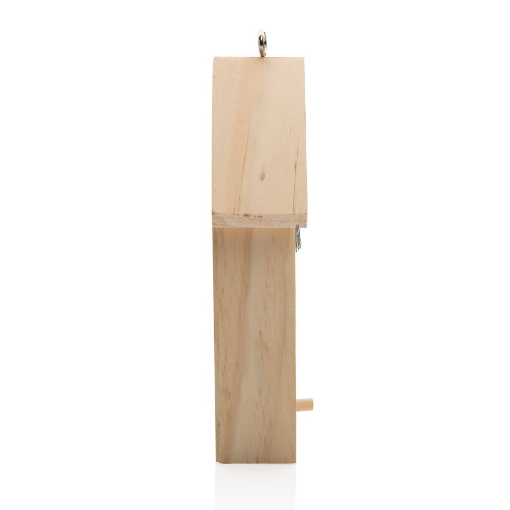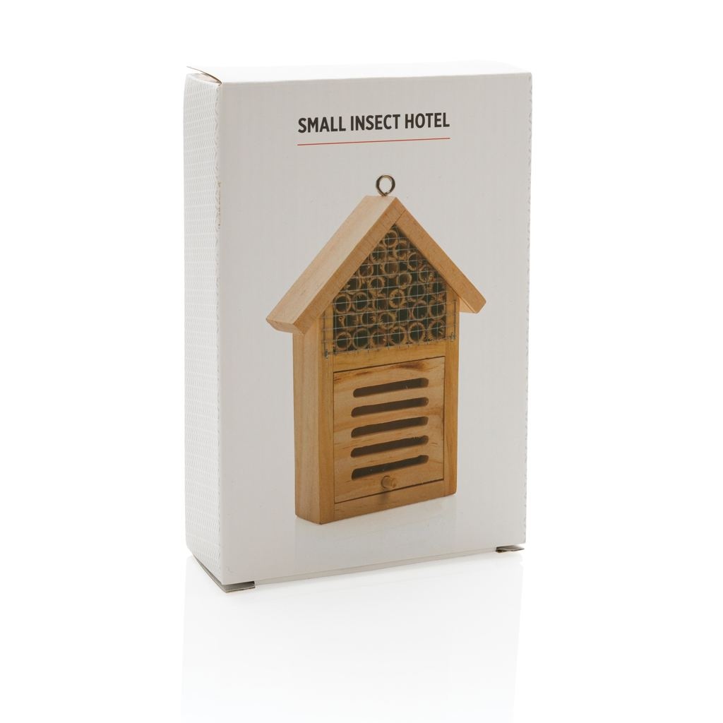 Les insectes sont indispensables dans la nature ! Ce petit hôtel à insectes en bois accueillera des abeilles solitaires et des chrysopes. L’hôtel à insectes doit être placé dans un endroit ensoleillé, protégé du vent et de la pluie, à au moins 50 cm du sol. L’avant avec l’ouverture doit être placé sur le côté ensoleillé. A l’arrière, il y a un trou pour le suspendre facilement.