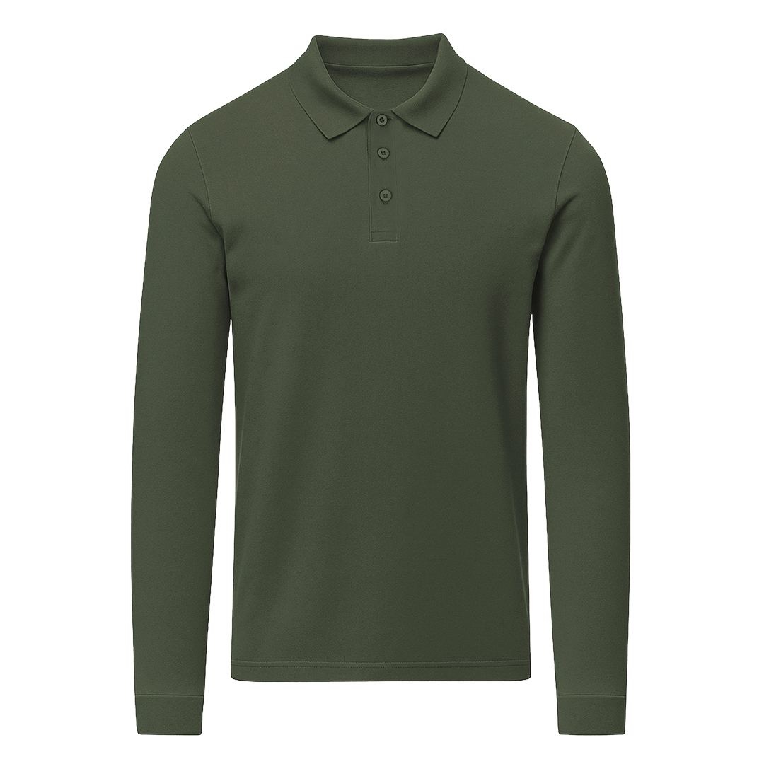 Polo unisexe à manches longues en tissu piqué. Col et poignets en maille côtelée 1×1 avec élasthanne pour un meilleur ajustement et confort. Patte de boutonnage à trois boutons ton sur ton et bande de propreté renforcée au col.