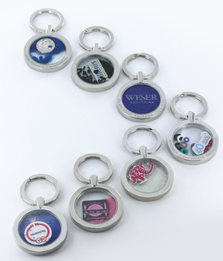 Porte-clés 4cm avec insertion de votre propre matière : poudre, céréales, billes de plastique, etc…