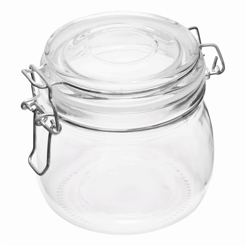 Pot de conservation CLICKY M avec fermeture à clip et anneau en silicone blanc: pour mettre en conserve, bouillir ou conserver des aliments, couvercle pré-assemblé, facile à ouvrir et à refermer, polyvalent, capacité d´environ 500 ml