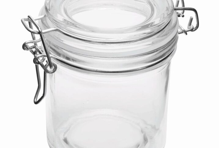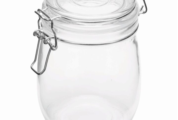 Pot de conservation CLICKY M avec fermeture à clip et anneau en silicone blanc: pour mettre en conserve, bouillir ou conserver des aliments, couvercle pré-assemblé, facile à ouvrir et à refermer, polyvalent, capacité d´environ 500 ml