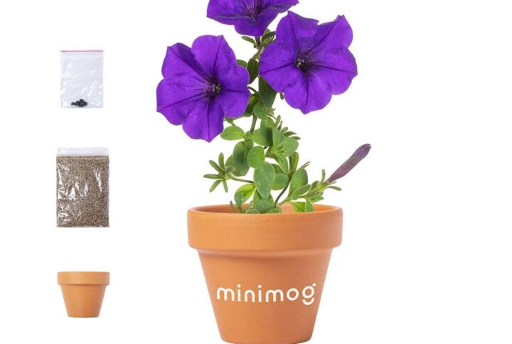 Pot de ligne nature dans une enveloppe en papier. Avec 5-8 graines de pétunia et un sac avec substrat de croissance.