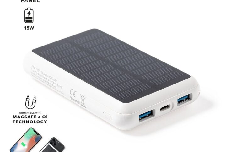 Batterie auxiliaire de recharge solaire externe en fibre de blé. Capacité de charge de 5 000 mAh. Avec connecteur d’entrée/sortie de type C + sorties USB. Il comprend un panneau photovoltaïque qui permet de recharger facilement la batterie dans n’importe quel espace extérieur sans avoir besoin d’une connexion. Présenté dans une boîte kraft design.Entrée/sortie de type C : 5 V CC 2,4 A, 12 W2 sorties USB : 5 V CC 2,4 A, 12 WLes capacités indiquées dans toutes nos batteries auxiliaires externes sont réelles, toutes incorporant des batteries de grade A et non recyclées, avec une durée de vie utile d’au moins 500 cycles de charge et conformes aux réglementations CE. De plus, ils sont fabriqués conformément aux normes RoHS et dans le respect des exigences de sécurité suivantes :Système de protection contre les surcharges de banque d’alimentation.Système de protection contre les décharges complètes qui offre une plus grande durabilité de la banque d’alimentation.Système de blocage pour éviter les courts-circuits.Système de transfert de charge constant, selon la capacité de l’appareil de destination.La canne à blé favorise l’utilisation de matières premières naturelles, réduisant ainsi les émissions polluantes.