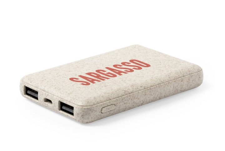 Batterie auxiliaire externe de 5 000 mAh, en fibre de café et coton recyclé. Avec 2 sorties USB, une entrée micro USB et une double connexion d’entrée et de sortie de type C. Câble de charge de type C inclus et présenté dans une boîte individuelle au design kraft. Avec fibre de café distinctive et coton recyclé. Manuel d’instructions disponible en espagnol et en anglais.La fibre de café est une solution circulaire obtenue à partir de l’utilisation des déchets produits lors de l’obtention du café. Une alternative durable qui favorise la réduction de l’utilisation des plastiques, économise de l’énergie dans son processus de fabrication et contribue à la protection de l’environnement.Entrée/sortie USB C : 5 V CC 2,4 VSortie USB : CC 5 V 2,4 AEntrée micro USB : CC 5 V 2,1 ALes capacités indiquées dans toutes nos batteries auxiliaires externes sont réelles, toutes incorporant des batteries de grade A et non recyclées, avec une durée de vie utile d’au moins 500 cycles de charge et conformes aux réglementations CE.Certification GRS disponible (Global Recycled Standard / Global Recycling Standard), qui garantit l’origine recyclée du matériau utilisé pour fabriquer le produit.De plus, ils sont fabriqués conformément aux normes RoHS et dans le respect des exigences de sécurité suivantes :Système de protection contre les surcharges de banque d’alimentation.Système de protection contre les décharges complètes qui offre une plus grande durabilité de la banque d’alimentation.Système de blocage pour éviter les courts-circuits.Système de transfert de charge constant, selon la capacité de l’appareil de destination.