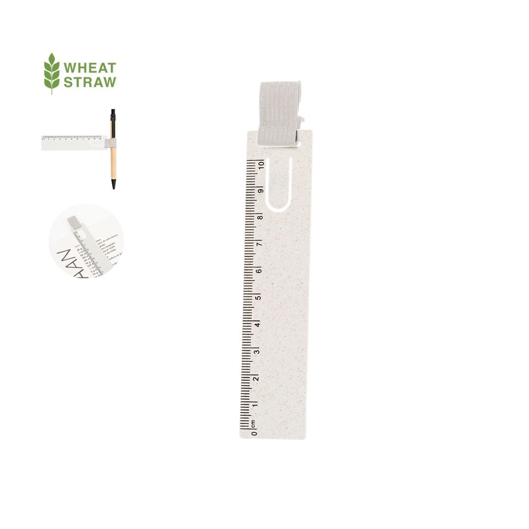 Original règle marque-page en canne à blé. Ustensile de mesure pratique jusqu’à 10cm avec languette à utiliser comme marque-page et élastique pour tenir les stylos. Fabriqué en canne à blé et polyester. Présenté individuellement dans un sac en papier recyclé. La canne à blé encourage l’utilisation de matières premières naturelles, réduisant ainsi les émissions polluantes.
