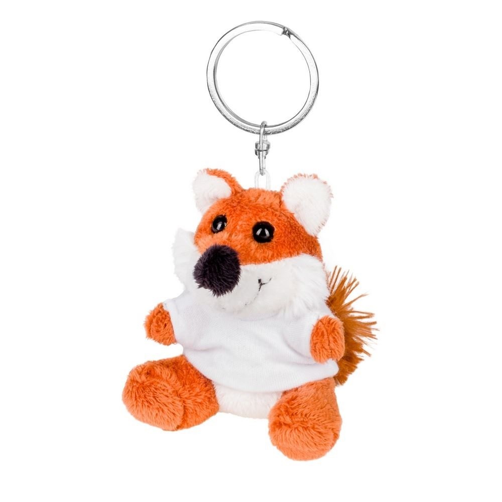 Porte-clés “renard” avec un T-shirt blanc sous l’imprimé, le T-shirt en polyester non marqué est emballé séparément, le produit est en peluche