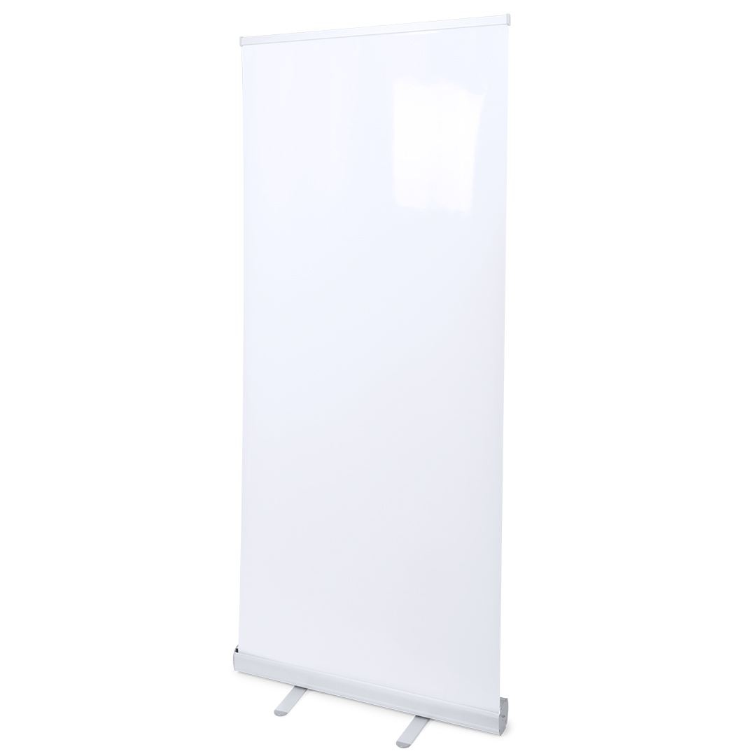 Roll Up de 85 x 200 cm en polypropylène résistant haute densité spécialement conçu pour le marquage en quadri. Avec supports aluminium et crochet de fixation. Livré enroulé dans une housse en toile.