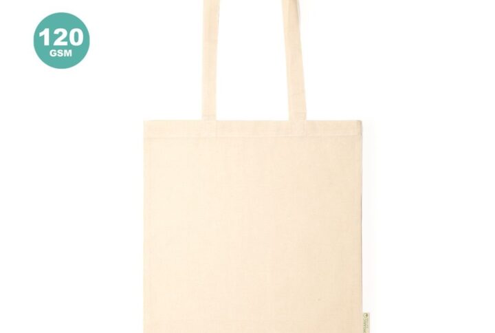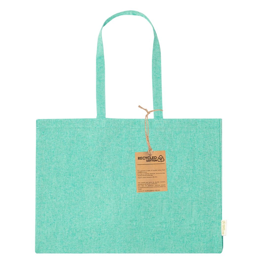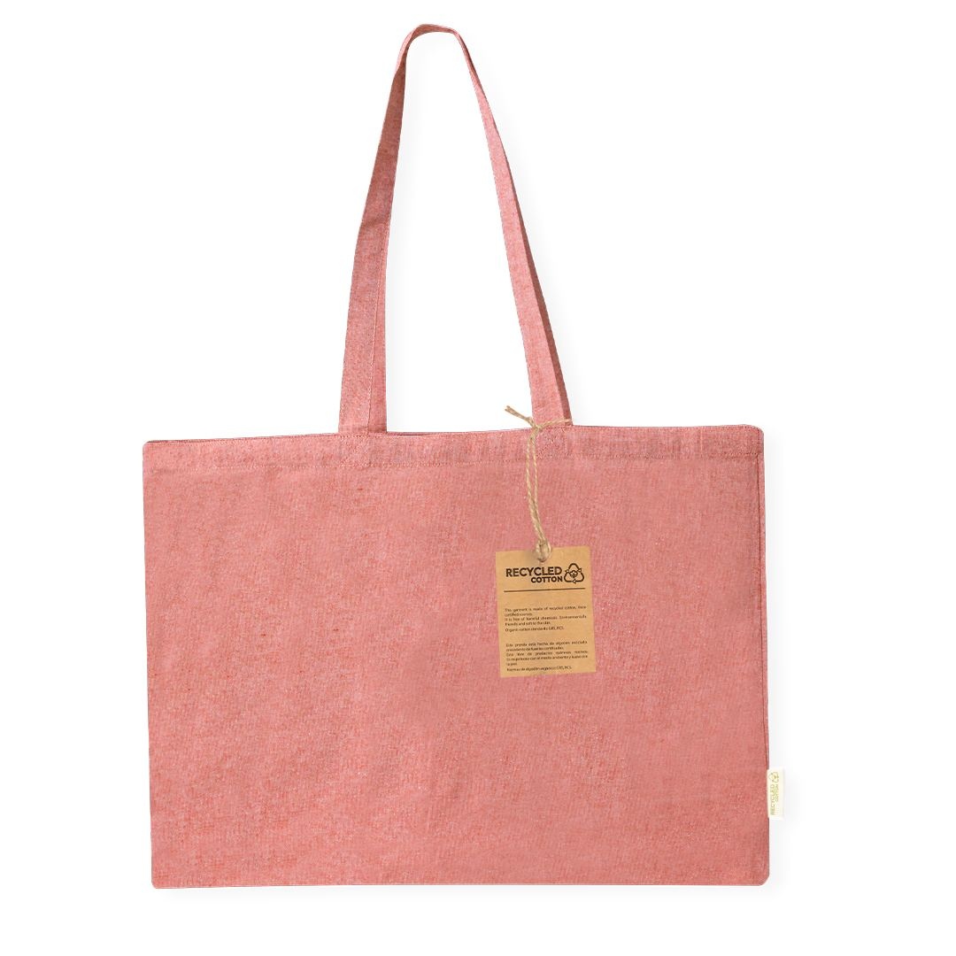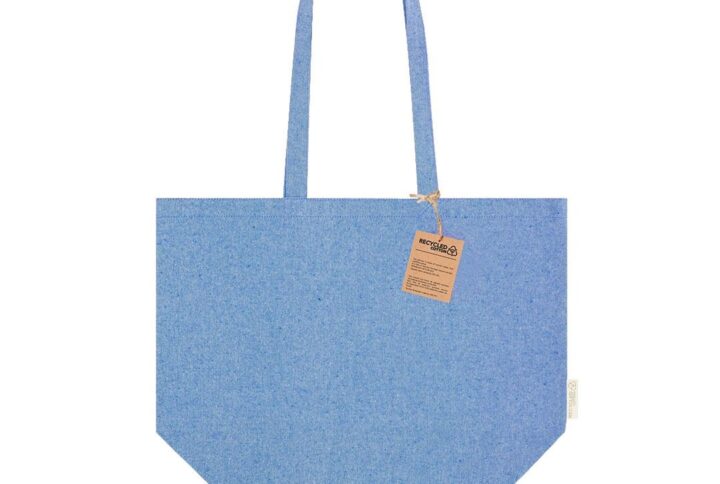 Sac fabriqué en coton recyclé de haut grammage 220g/m2. De finition cousue et avec de longues poignées renforcées. Avec soufflet et de nombreuses couleurs disponibles. Badge coton recyclé sur étiquette extérieure. Résistance jusqu’à 9 kg de poids.