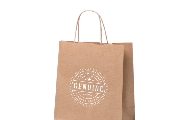 Sac léger nature line en papier recyclé de 80g/m2. Avec poignée et soufflet originaux découpés.