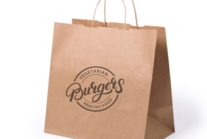 Sac de la ligne Nature, en papier recyclé finition blanc 100g/m2, avec anses courtes renforcées de couleur naturelle et soufflet. Résistance jusqu’à 8 kg de poids.