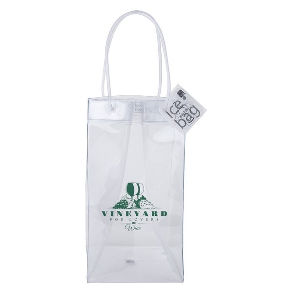Sac seau à glaçon transparent, pour 2 bouteilles ou 1 magnum. Avec étiquette Ice bag. Résistance 5 kilos. Modele déposé, marque déposée.