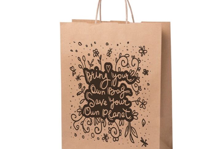 Sac de la ligne Nature, en papier recyclé finition noire 100g/m2, avec anses courtes renforcées de couleur naturelle et soufflet. Résistance jusqu’à 8 kg de poids.
