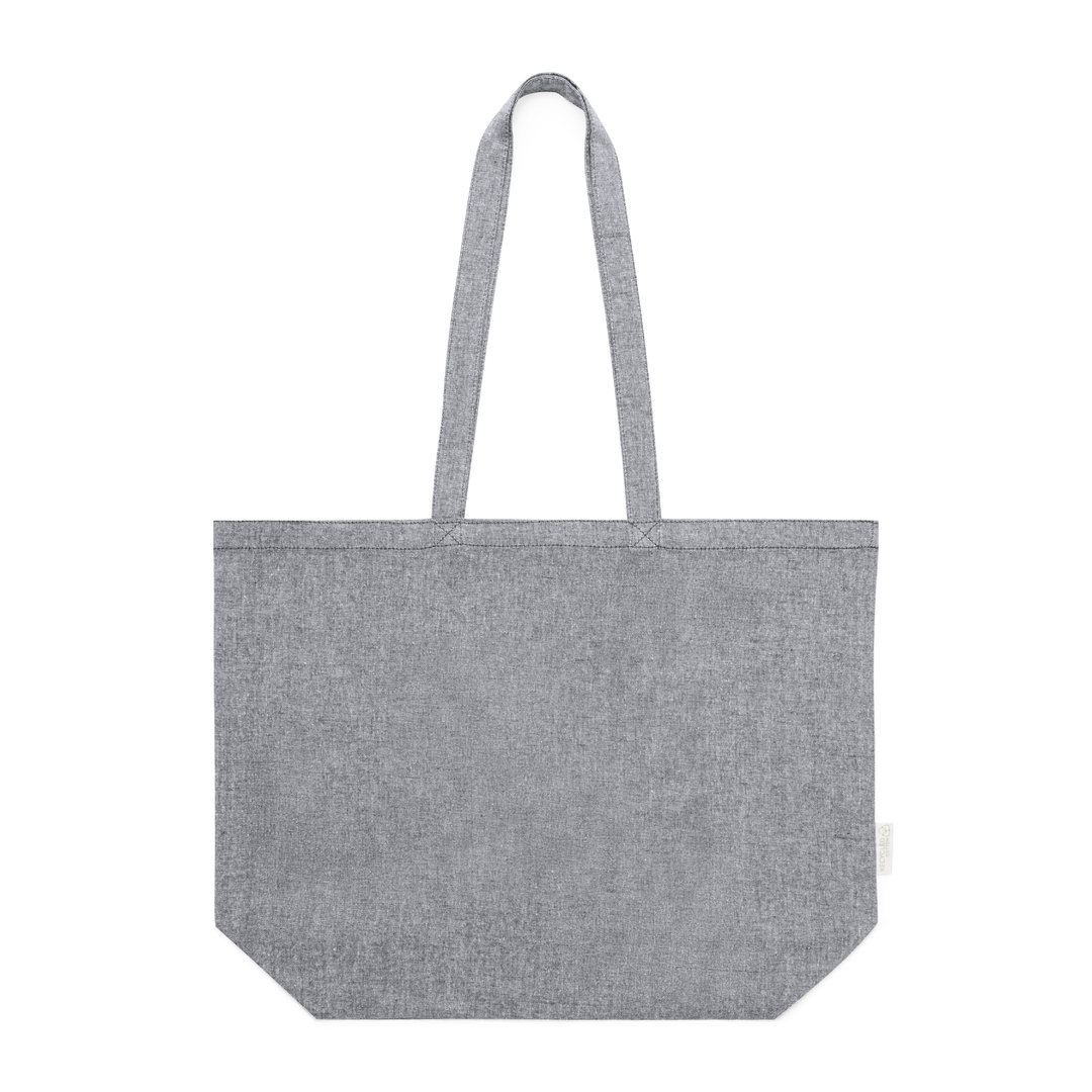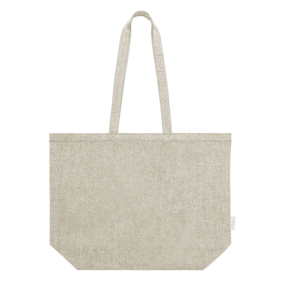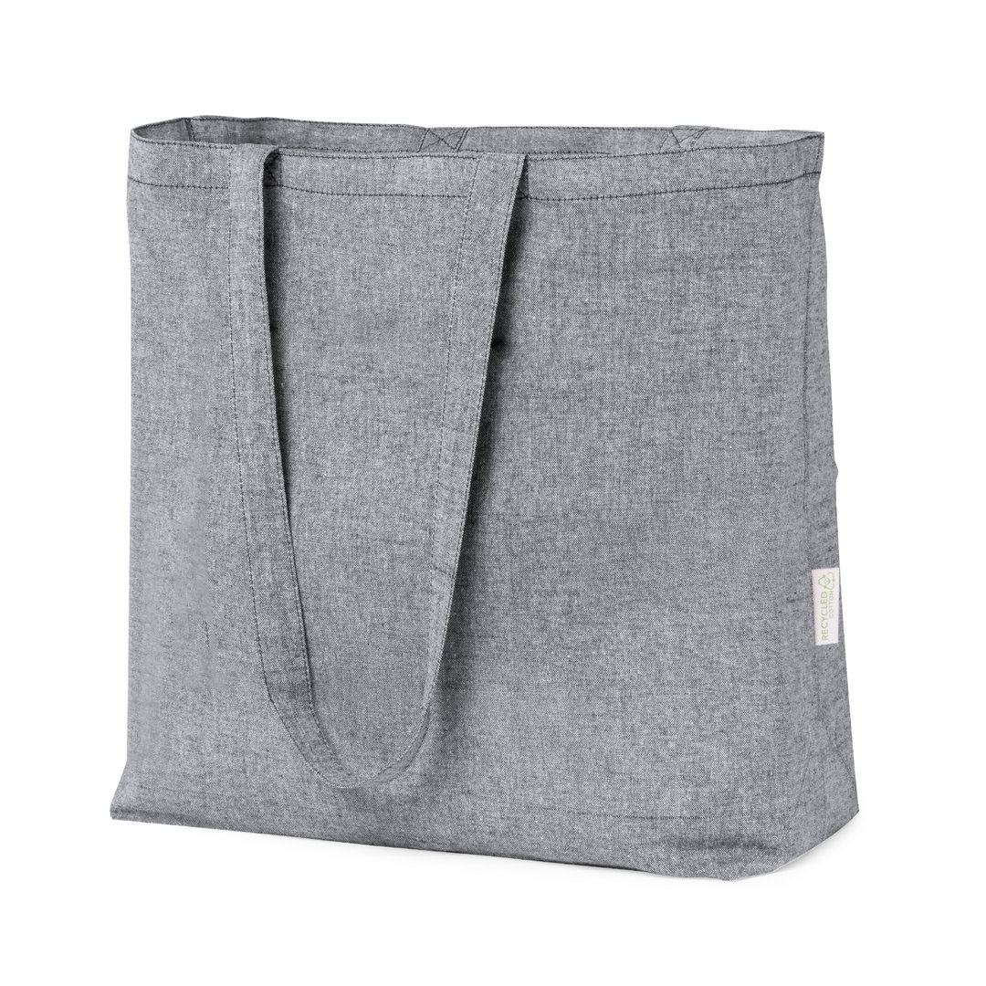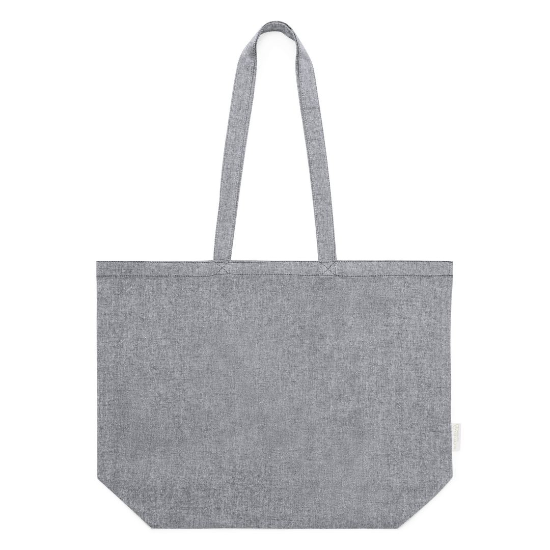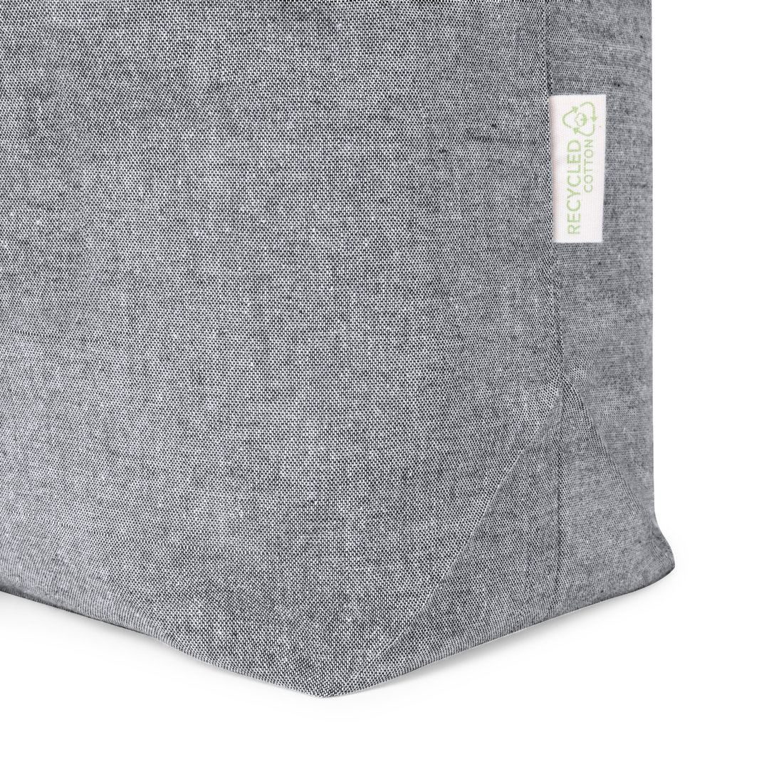 Sac de la ligne Nature, en coton recyclé 140g/m2. Avec une finition cousue et de longues anses renforcées (70 x 2,5 cm). Soufflet sur la base et disponible dans les couleurs naturelles et noires, avec du coton recyclé distinctif sur l’étiquette extérieure. Résistance jusqu’à 6 kg de poids.Certification GRS (Global Recycled Standard / Global Recycling Standard), qui garantit l’origine recyclée du matériau utilisé pour fabriquer le produit