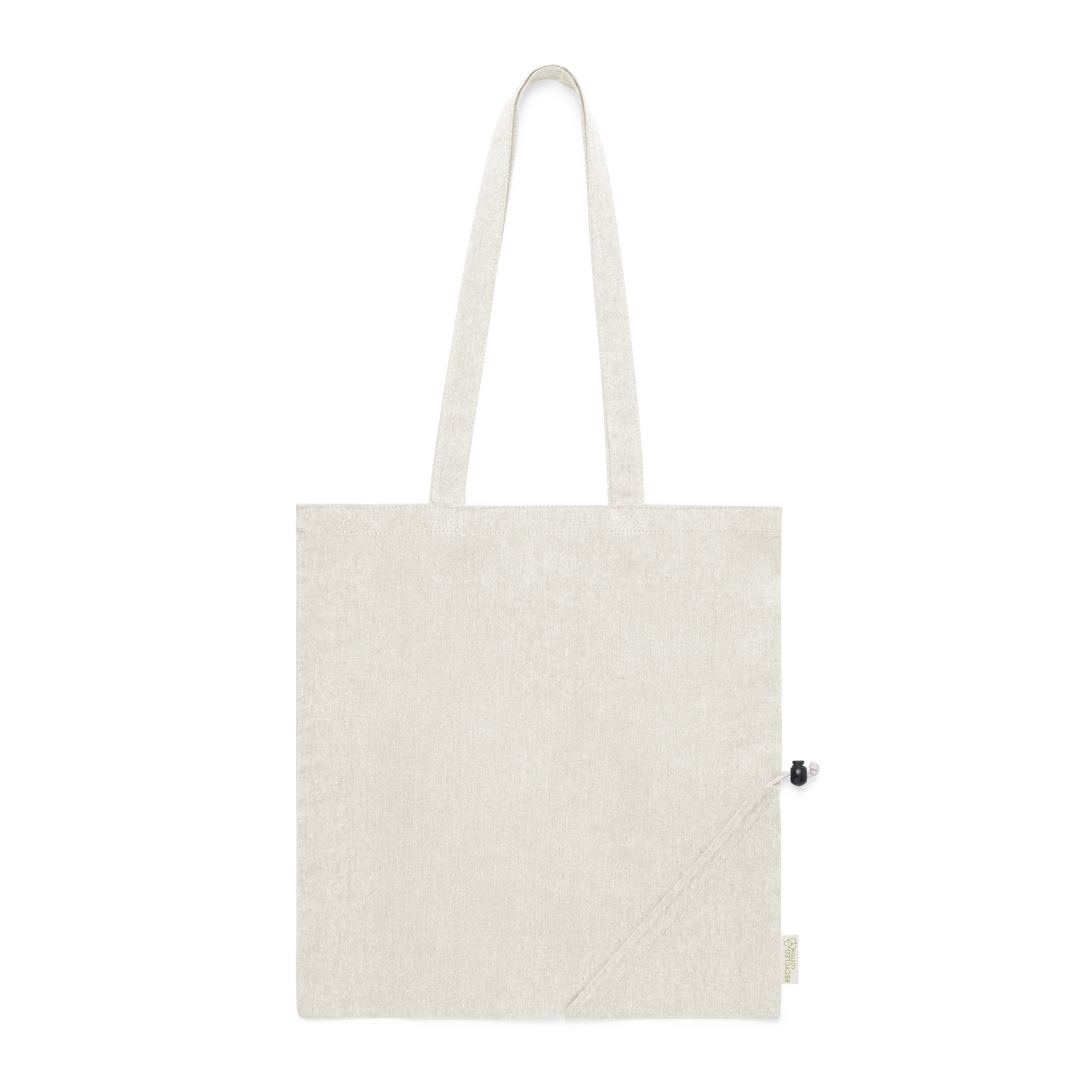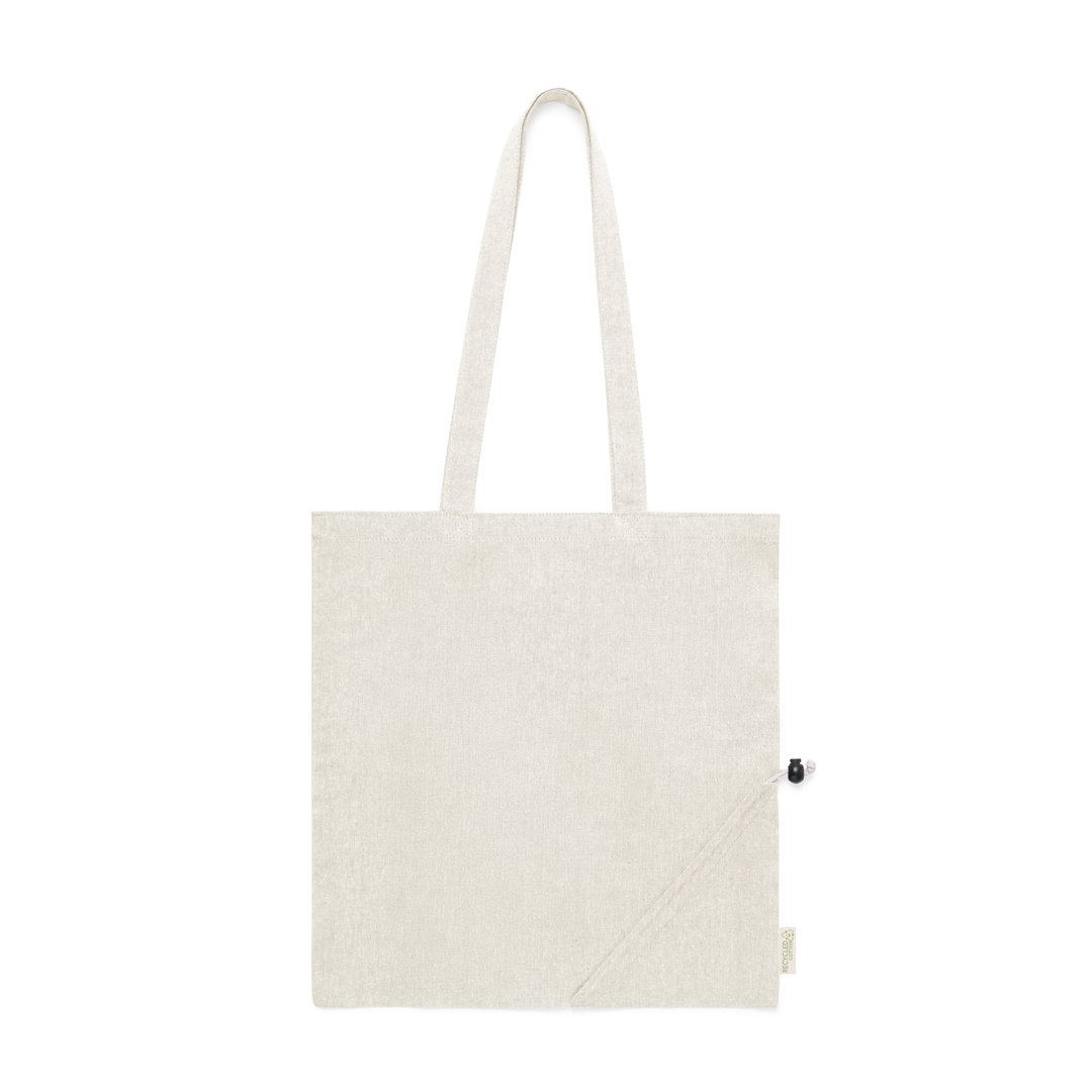 Sac pliable de la ligne nature, en coton recyclé 120g/m2. Avec une finition cousue et de longues anses renforcées (70 x 2,5 cm). Pliage petit format par cordon avec accessoire de réglage. Disponible dans une large gamme de couleurs, avec du coton recyclé distinctif sur l’étiquette extérieure. Résistance jusqu’à 6 kg de poids.Certification GRS (Global Recycled Standard / Global Recycling Standard), qui garantit l’origine recyclée du matériau utilisé pour fabriquer le produit