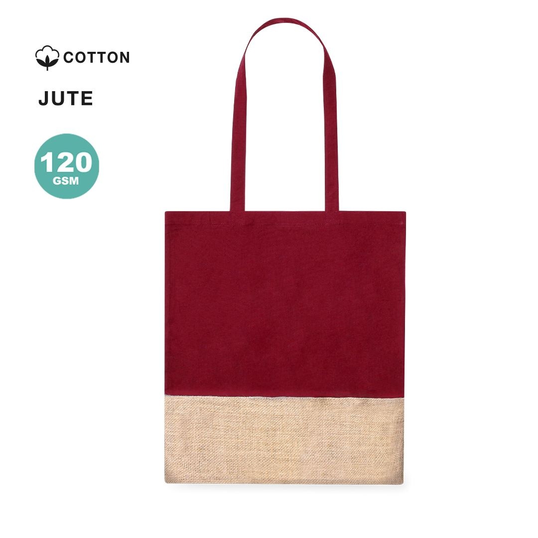 Sac coton 120 g/m2 en combinaison avec du jute. Poignées plates confortables et disponibles en différentes couleurs. Résistance jusqu’à 8kg poids.