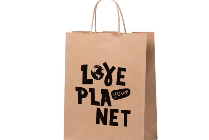 Sac en papier 80 g/m2 avec soufflet et poignées courtes renforcées. Finition naturel. Résistance jusqu´à 5 kg.