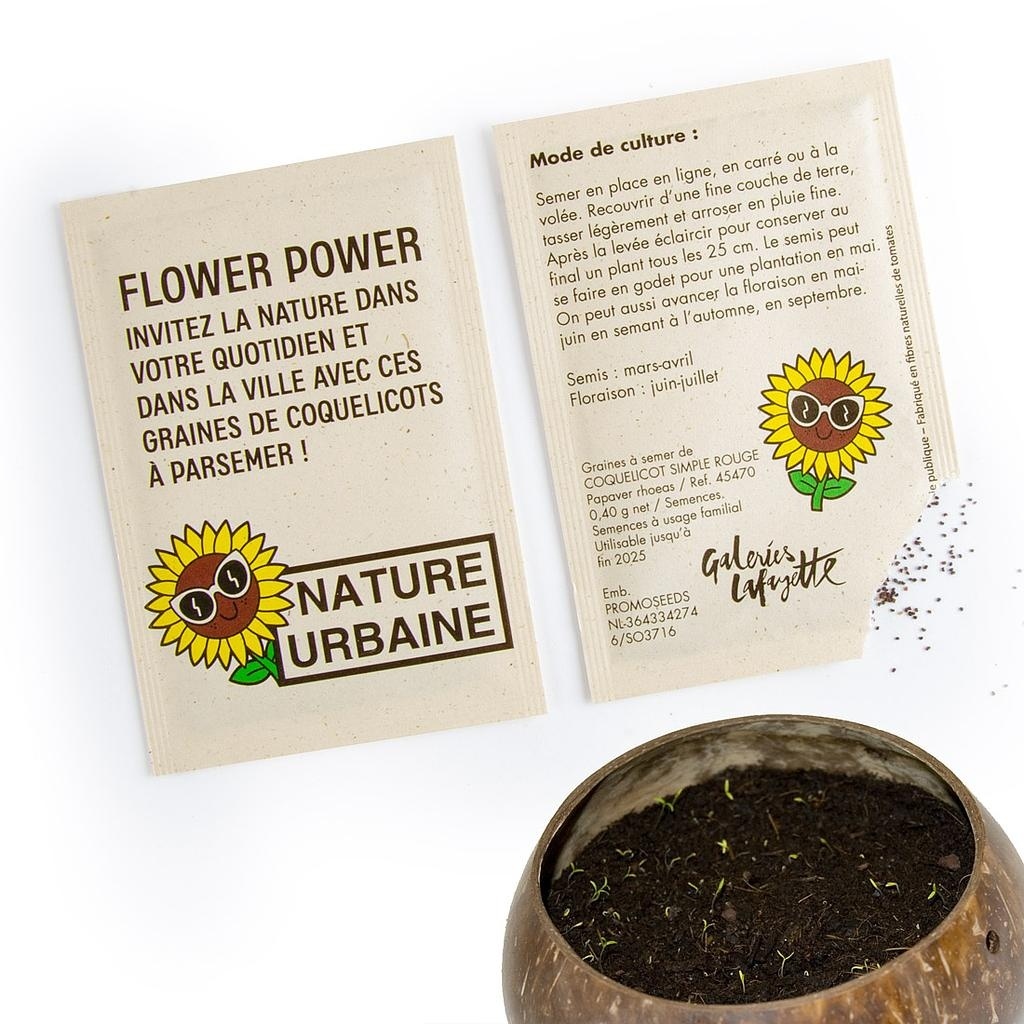 Coquelicot, tournesol, capucine, basilic, ciboulette, mélange de fleurs mellifères… incarnez votre symbole avec des graines au message positif et faciles à faire germer parmi notre large gamme de fleurs, aromates, légumes et arbres garantie germination. Lancement de produit, communication RSE… une graine évoque tellement, amusez-vous !