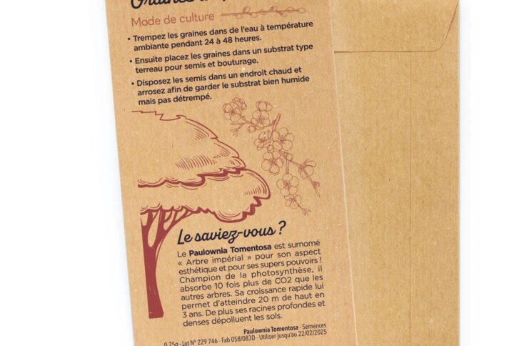 • Sachet graines thermosoudé sur les côtés donc étanche (Papier PE)