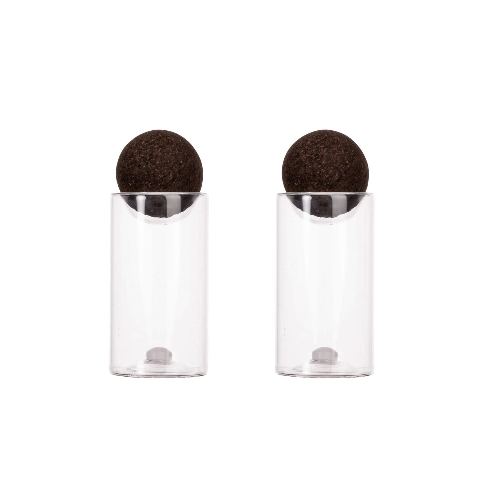 Petits pots en verre pour le sel et le poivre avec une boule en liège foncé. Une combinaison mignonne et classique qui ne se démode jamais. Ces bocaux conservent le sel et le poivre de manière naturelle et indiquent un choix conscient. Nous aimons le liège, le plus durable de tous les matériaux organiques. De plus, il est totalement imperméable aux liquides. Des bocaux à sel et à poivre que vous voudrez toujours garder à portée de vue. Livré en lot de 2.