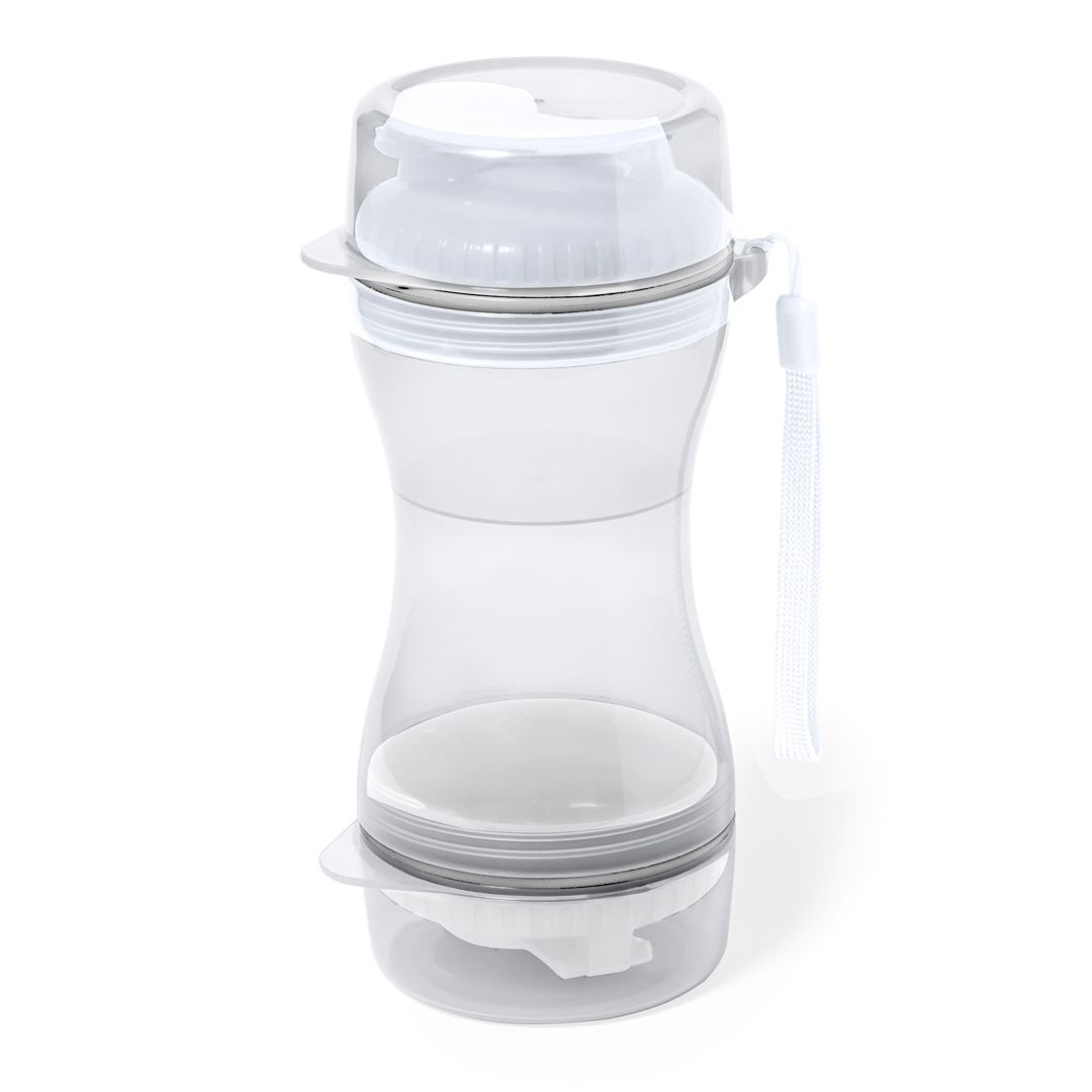 Ensemble pratique d’animaux de compagnie fabriqué en ABS résistant. Avec deux compartiments séparés de 330 ml et 280 ml, avec bouchon à vis pour plus de sécurité et doseurs inclus. Il dispose également de deux couvercles à utiliser comme bol. Présenté individuellement en boîte de design kraft.