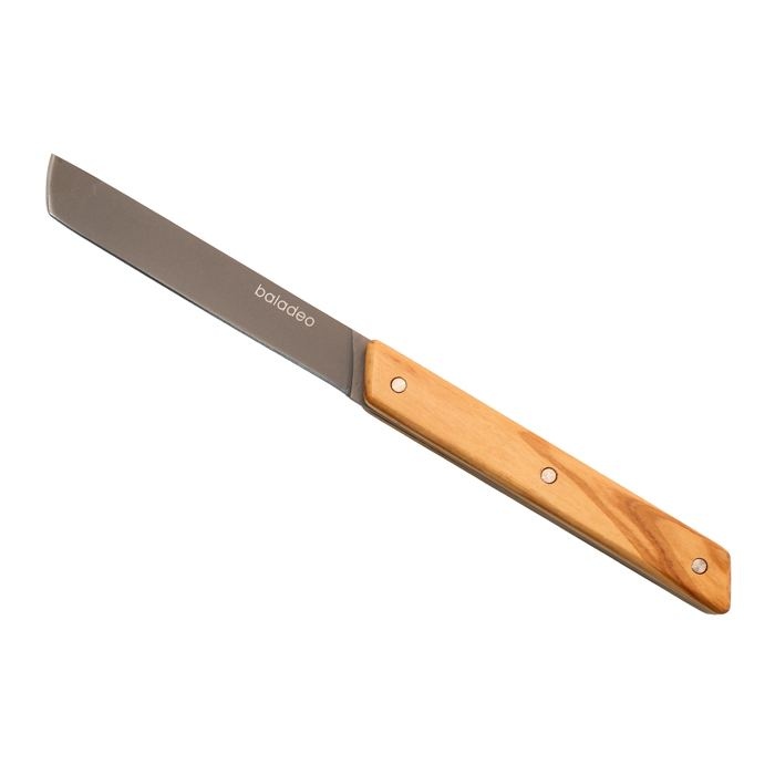 – Manches en bois d’olivier nervuré sur ces pièces de coutellerie pour apporter élégance et authenticité sur toutes les tables.