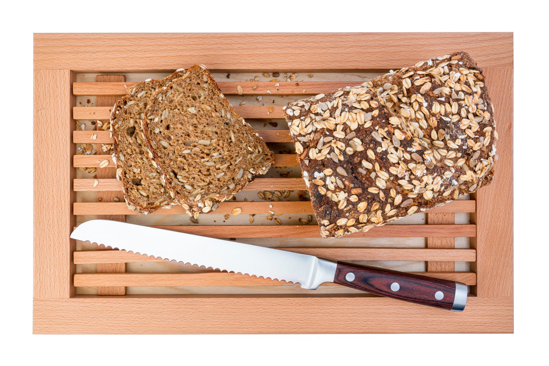 Couteau à pain classique forgé avec lame de 20 cm de long, finement dentée. Ne passe pas au lave-vaisselle. Matériau: acier inox, manche en bois de pakka