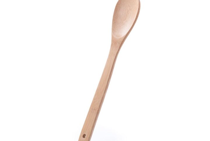 Spatule de cuisine Gamme éco-friendly en bambou poli, avec poignée découpée pour accrocher.