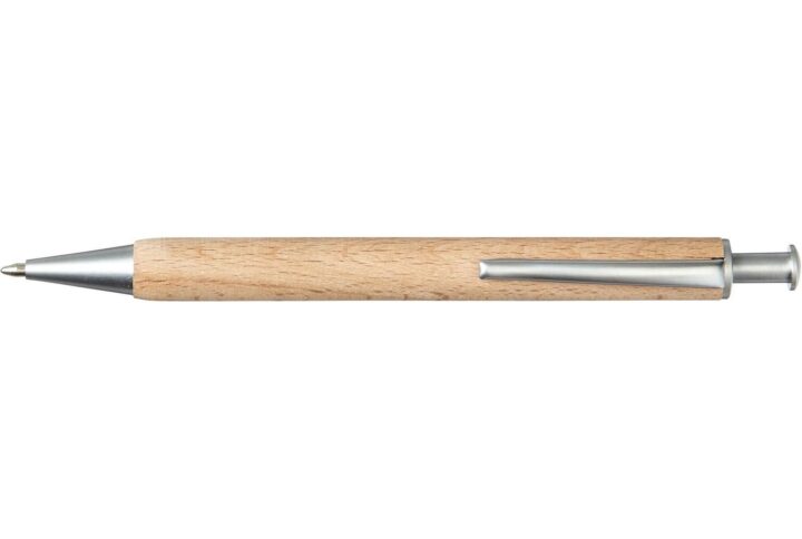 Stylo bille en bois de hêtre et métal dans un écrin en bois de hêtre, mine bleue. Fourni avec une encre d’origine allemande Dokumental.