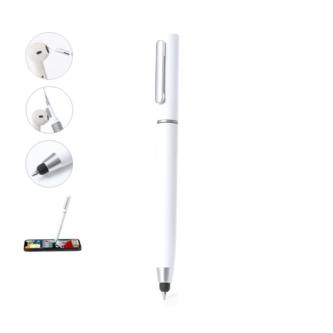 Stylo pointeur pratique à mécanisme rotatif, avec des accessoires de nettoyage logés sur le dessus de la canne. Il comprend une brosse et une pointe métallique protégées par une capuche. Avec clip métallique et encre bleue. Disponible en plusieurs couleurs et présenté individuellement dans une boîte de conception kraft.