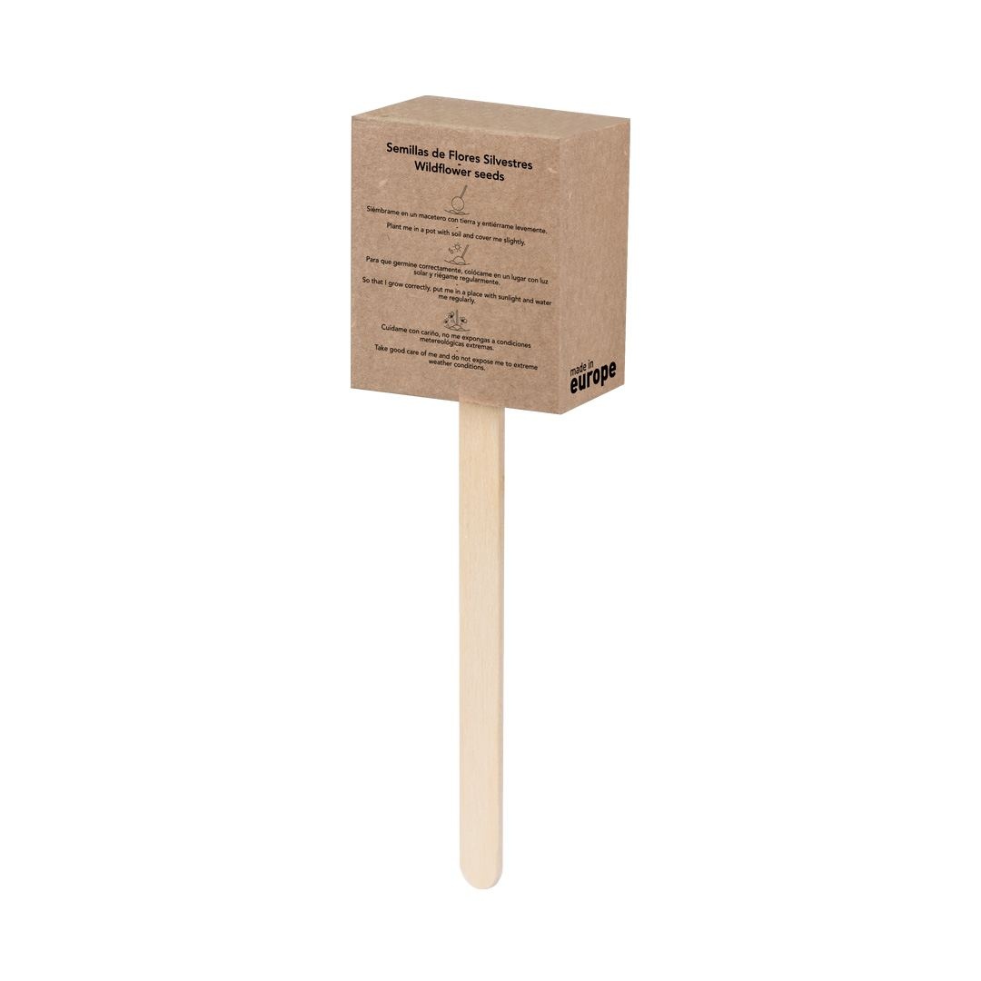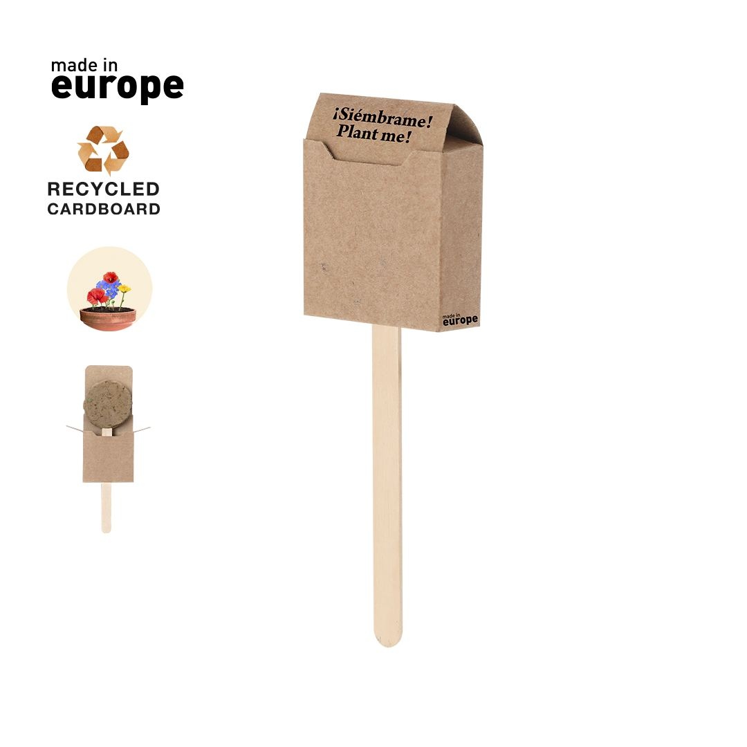 Sucette en graines, présentée dans un étui en carton recyclé avec instructions de plantation. Fleurs sauvages en couleurs assorties.