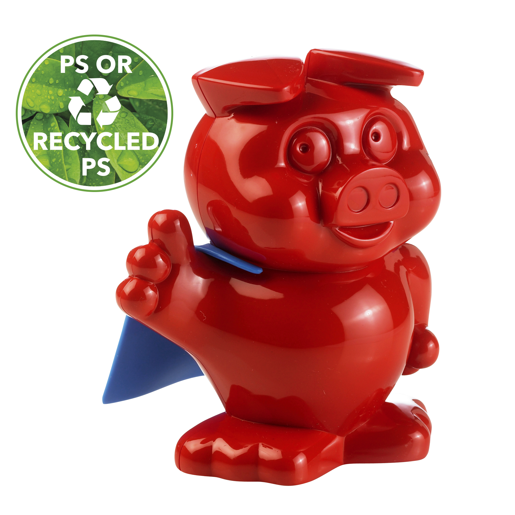 Tirelire Super Cochon amusant avec cape de super-héros à l’arrière. La tirelire est disponible avec ou sans logo sur l’estomac ou la cape. Fabriqué dans une belle qualité solide et des couleurs complémentaires puissantes sur le corps et la cape. Serrure et clé incluses.